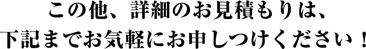 伊豆市 熱海市 下田市 沼津市 御殿場市 富士市 小山町 裾野市 三島市 函南町 伊豆の国市 伊東市 東伊豆町 西伊豆町 河津市 松崎町 南伊豆町 TOP 料金の目安 施工までの流れ お客様の声 よくある質問 会社概要 問い合わせ電話をかける 作業内容 料金 立ち木を切り倒して伐採 5,000円/本~ 立ち木の処分料 2,000円/本~ 立ち木に登って伐採 現場見積りにて 高所作業車を利用して伐採 現場見積りにて ※上記価格は税別となります